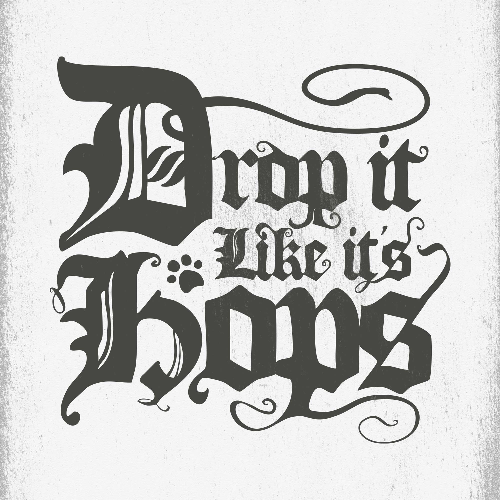 Inspired by Snoop's signature style and the iconic Drop It Like It’s Hot music video, the creative process involved adapting custom gothic lettering from an old typography book. Scanning, distorting, and layering textures to build a grungy, graffiti-inspired end product.