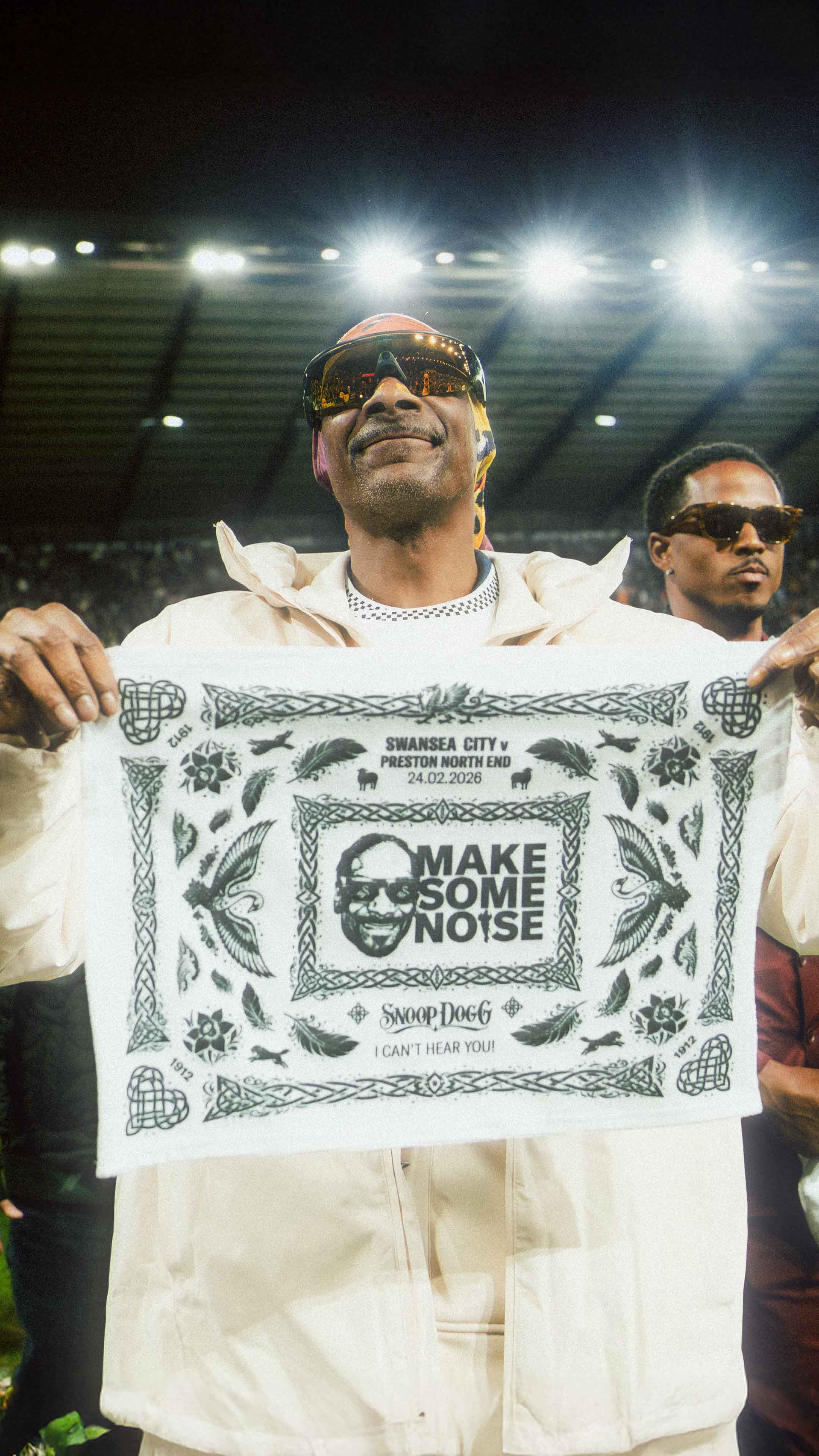 20,000 home supporters swinging a design created specifically for that moment. A powerful way to mark Snoop Dogg’s first visit to the stadium as he paraded the pitch.